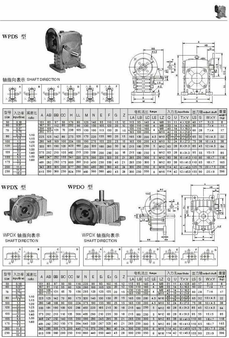 WPDS,WPDX,WPDO型型號參數圖表
