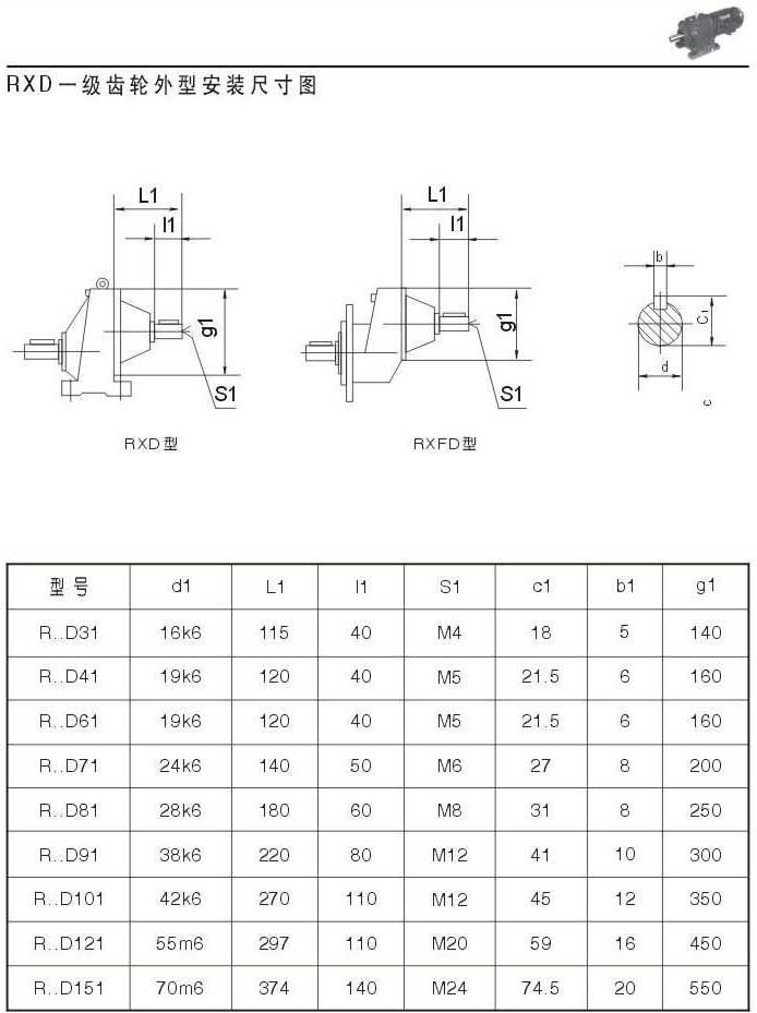 RXD一級齒輪外型安裝尺寸圖表